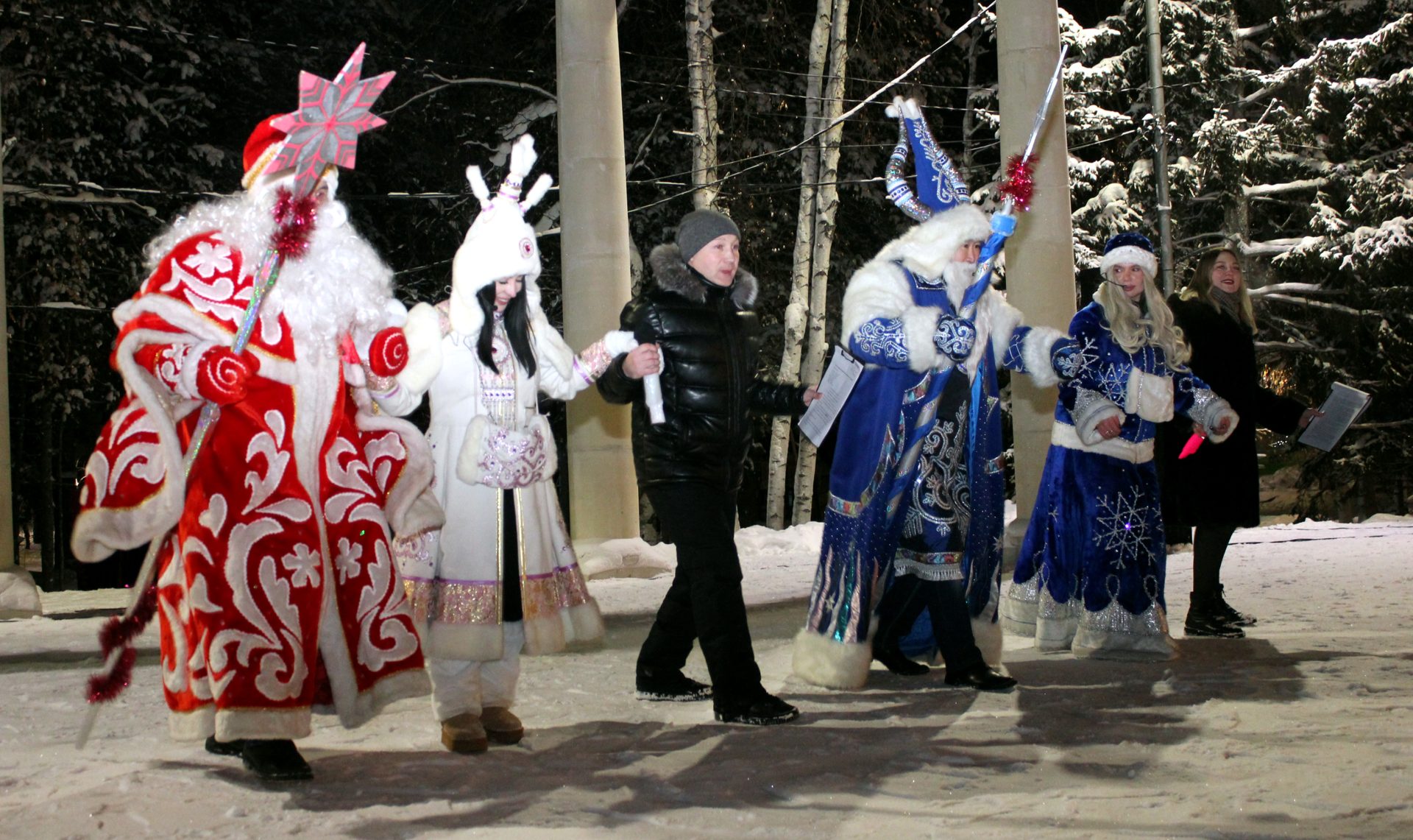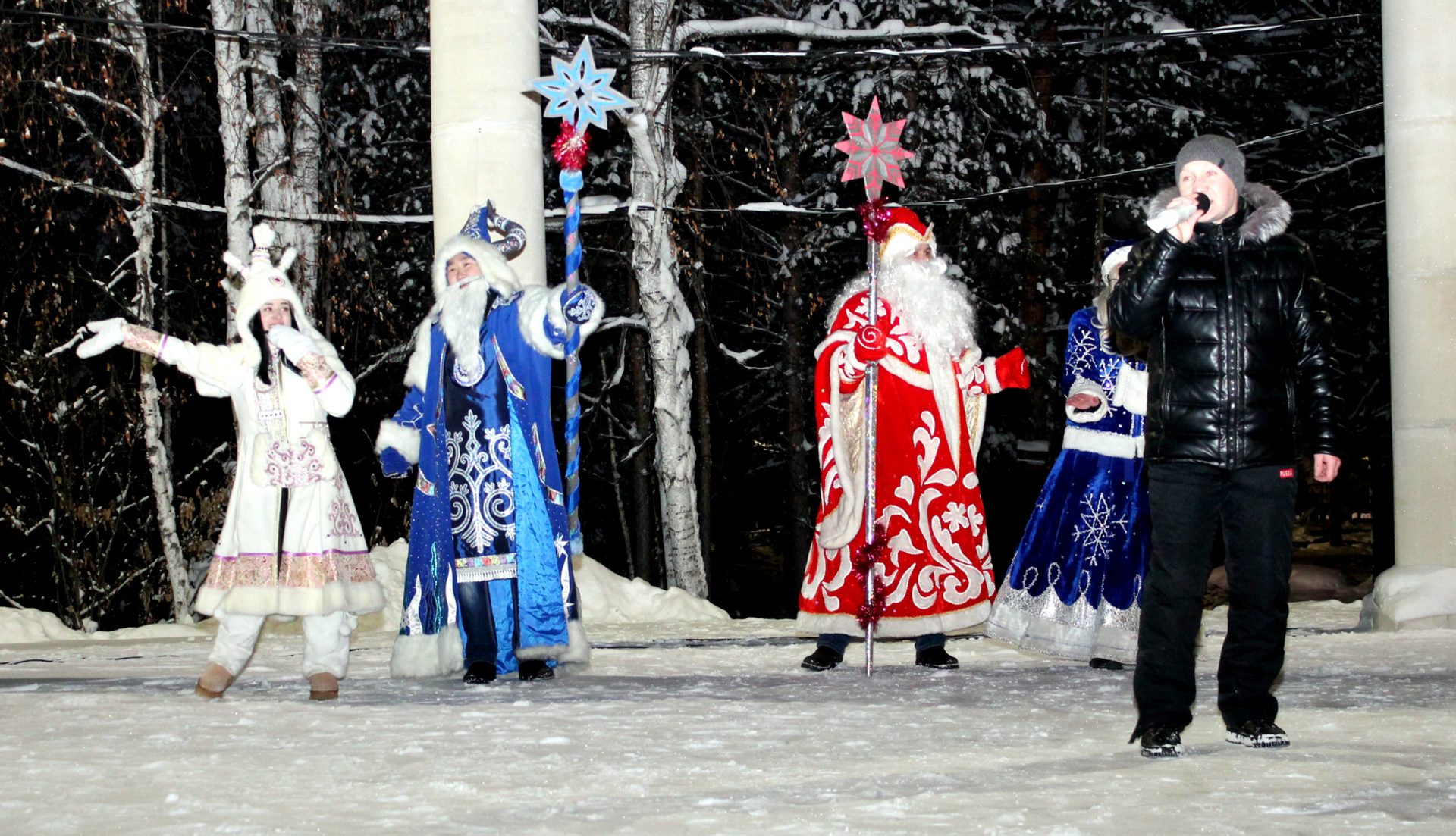 1 января у главной елки города, через полчаса после боя курантов, состоялось представление подготовленное творческим коллективом ЦДНТ. Мэр города Анатолий Макушев от всей души поздравил ленчан с наступившим Новым годом, выразив пожелание, чтобы все трудности и проблемы остались в ушедшем году, а новый 2026 принес всем нам счастье, здоровье и долгожданную Победу. Ведущие праздника не только порадовали присутствующих на празднике горожан своими песнями, но и под их одобрительные аплодисменты устроили своеобразный шутливый танцевальный батл между Дедом Морозом со Снегурочкой и Чысхааном с Хаарчааной. Теплая новогодняя ночь стала ленчанам настоящим климатическим подарком и позволила в полной мере насладится её волшебством.