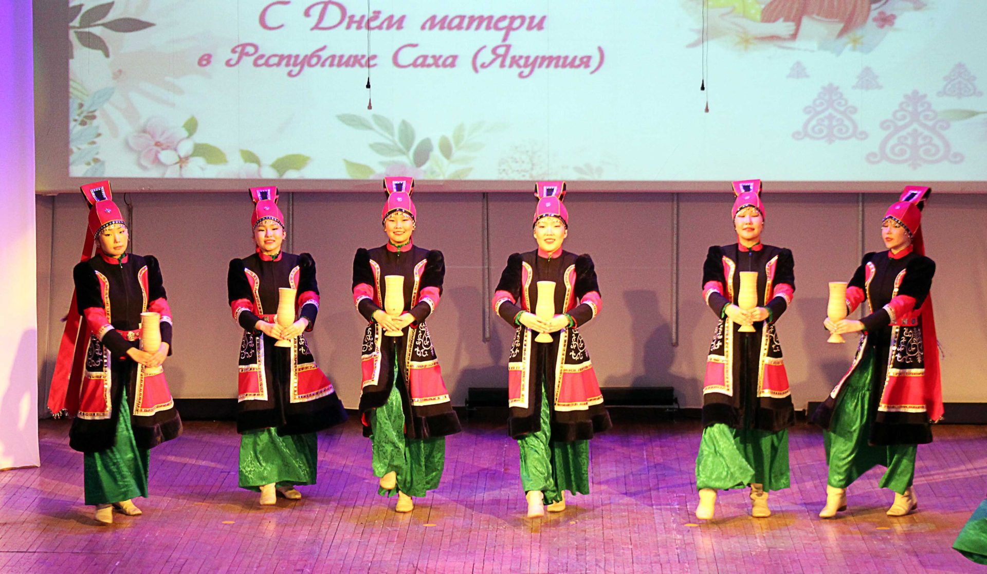 Подчеркивая республиканский статус праздника, открыл мероприятие образцовый ансамбль якутского танца «Дьиэрэнкэй» (руководители А.Войтович и Я.Терешкина) танцем с чоронами. В официальной части мероприятия заместитель главы ГП «Город Ленск» Наталья Эндерс искренне поздравила присутствующих в зале матерей, сделав акцент на тех, чьи сыновья сейчас защищают Родину на фронтах СВО и выразила им особую благодарность. Восторг умиления вызвал у зрителей танец самых юных участниц ансамбля народного танца «Вдохновение» (руководители А.Микрюков и К.Тагирова) — «Царевна». Солисты фольклорного ансамбля «Соловейко», Виктория Богидаева и Арина Микрюкова исполнили песню «Во саду ли, в огороде». Ансамбль танца «Антураж» (руководитель Н.Макушева, педагог- хореограф А. Мединская) выступил с композицией «Весёлое кантри».
